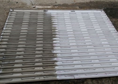 PVC (horizontal e vertical): Lavagem individual das lâminas com água e produto apropriado;